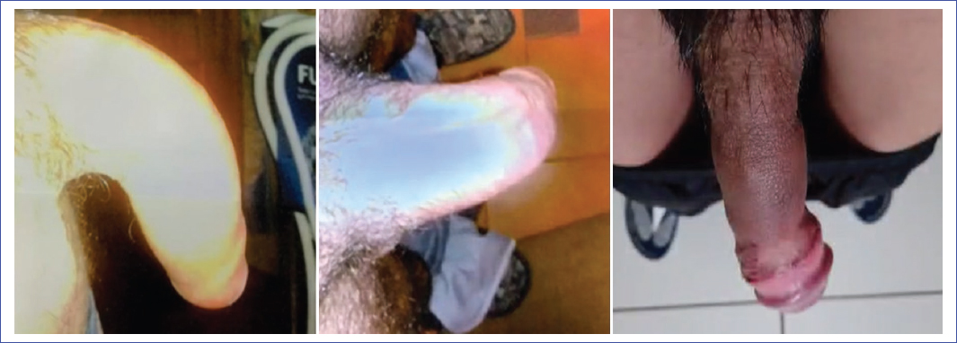 Varón de 21 años que acude a consulta refiriendo incapacidad para el coito por la presencia de curvatura peneana. Dicha curvatura estaba presente desde la aparición de las erecciones en la adolescencia. En la exploración física se evidenció una curvatura peneana ventral de 60° y una longitud peneana en erección de 16 cm (Fig. 1). No se encontraron alteraciones de la uretra, como hipospadias o epispadias, y la ecografía peneana no mostró alteraciones.