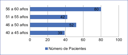 En cuanto a la distribución por edad de los participantes del estudio, se observa que el mayor porcentaje estuvo en el rango de 56 a 60 años (37,56%) (Fig. 1).